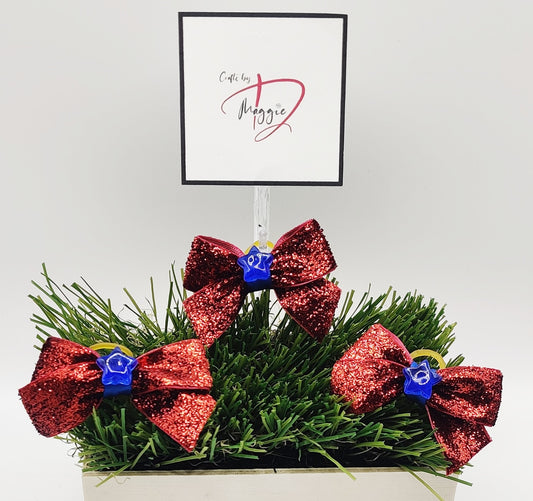 Maggie D hair bow accessories are ideal for small dogs, cats, rabbits..... even their humans! These uniquely designed bows are attachedĀ to an alligator clip or a grooming elastic band, making them easy to put in and secure in place.